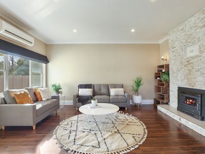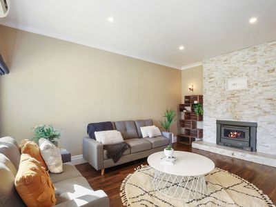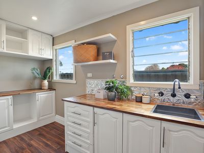 This renovated weatherboard home has a lovely open plan style living, dining and kitchen area with wood-fire and split-system, dishwasher and dining area filled with natural light.