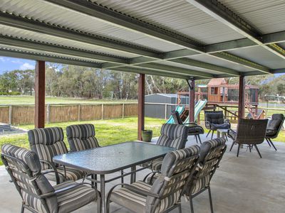 Entertaining is in mind with this property, with massive under-roof outdoor entertaining and BBQ area, privacy screens, veggies patches, garden shedding, children's play area, secure house yard, farm paddock, excellent side access, 2 car lock-up garage and situated on approx 2.5 acres.
