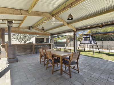 Outside you will find a fenced area for the kids to play, electric front gates, and an entertainer's dream undercover BBQ area!