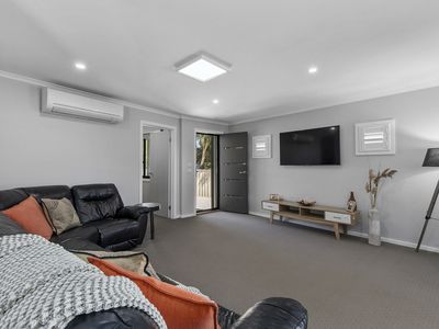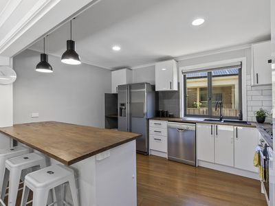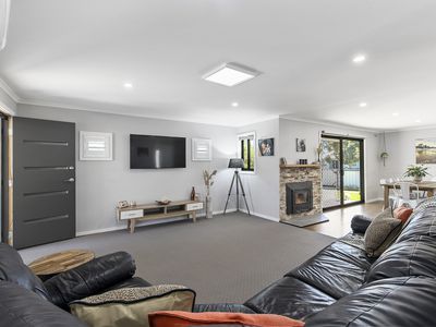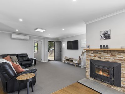 Downstairs consisting of a large living room with beautiful wood fire and stone mantle, split system heat/cool and open plan dining, and kitchen. With a fresh and modern feel, you have plenty of storage, dishwasher, 90cm gas cooker and plenty of room to move.