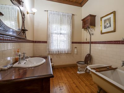 - Bathroom with claw foot tub