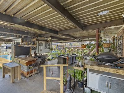 Outside is an entertainers dream with a massive undercover area looking out to the established gardens and saltwater inground pool. There are multiple garden sheds, a two car garage and a 3 car carport with rear access. This home also features split systems, evaporative cooling and wood fire for all year round comfort, solar panels, water tank & chook yard.