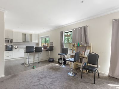 - Open plan kitchen, dining, living space, with split system and access to the rear courtyard