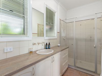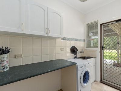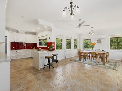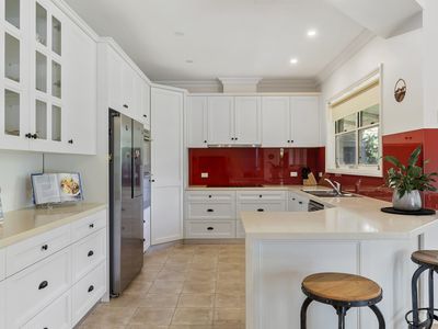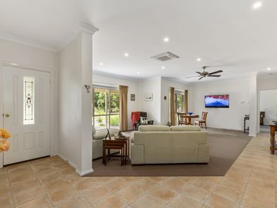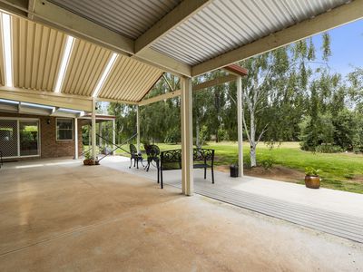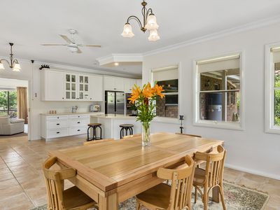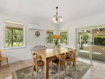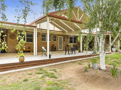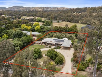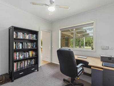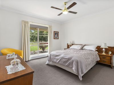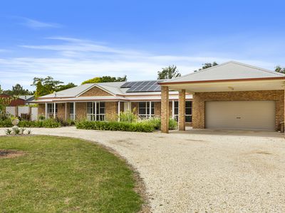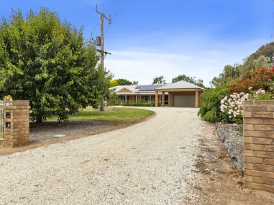 This imposing brick home is situated on just over 1 acre of land on the outskirts of Avenel in an impressive garden setting. Accommodation comprises four large bedrooms ( main with ensuite ) , all with ceiling fans and built-in robes and a separate office or 5th bedroom. The tiled kitchen /family room has been recently updated and is bright and airy.