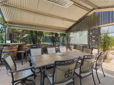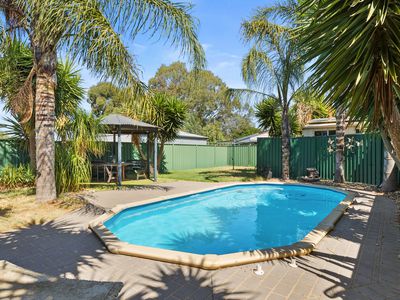 With 4 bedrooms, recent refurbishments inside, excellent outdoor entertaining area, in-ground pool surrounded by established palms, solar electricity, excellent shedding including a man cave and also 2 car garage!